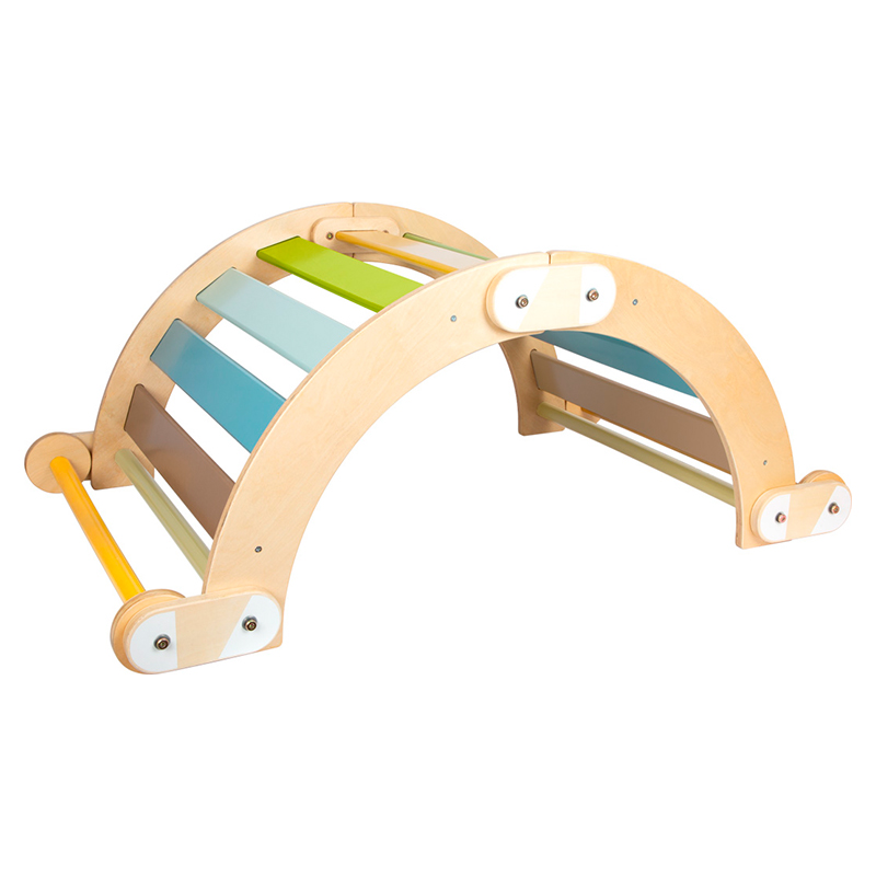 Er det en båd? Eller måske en hule? Eller broen som de tre bukke bruse går over?Denne klatrevippe er stabil, har fine farver og flere funktioner, for den kan både stå som en bro og vendes og blive en vippe.Den kan bruges alene eller kombineres med klatretrekant eller klatrebræt, hvis du vil skabe en større klatrebane. Brug den til balancetræning, motorikleg og måske hulebyggeri inde hos dig eller i tumlerummet eller gymnastiksalen.Max 50 kg belastning.