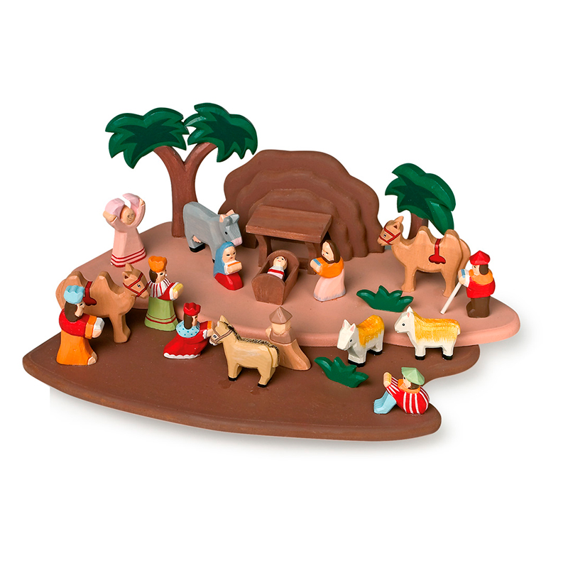 Krybbespillet gør det sjovere at fortælle fortællingen om Jesus fødsel og hvorfor det er, at fødselsdagen var den første jul nogensinde. Og hvordan er det nu med hellig tre konger?23 dele og små håndskårne træfigurer.Figurerne er bl.a. Josef, Maria, det lille Jesusbarn, de tre vise mænd, hyrder, dyr i stalden, en engel og kameler, der er klar til fortælling af historier fra Biblen eller andre fortællinger.
