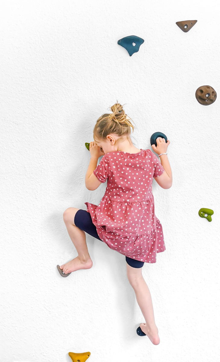 At gå på gulvet er overvurderet. Sæt klatregreb op på væggen og på siden af trappen og lad dit barn kravle rundt i hele huset. Sæt dem på træerne eller husmuren og lad dit barn lege chimpanse eller agame udenfor. De 10 klatregreb skrues nemt fast på alle stabile flader, men du skal selv sørge for at bruge den rigtige type skrue og rawplugs. Der medfølger skruer, men vi kan ikke garantere, at de passer til den flade, du vil sætte klatregrebene op på.
