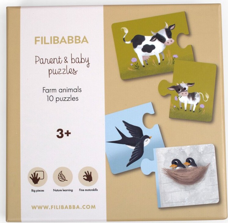 Styrk din finmotorik og lær bondegårdsdyrene at kende på samme tid. Se, nogle af de søde dyreunger ligner deres forældre, og andre ser helt anderledes ud! Dit nye puslespilssæt består af ti...
