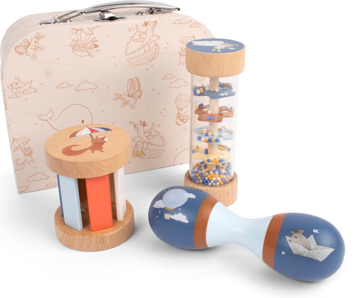 Giv dit barn en verden af leg med Filibabba - Sanselegetøj og Legekuffert Sæt. Dette smukke legetøj er designet til at stimulere barnets sanser og fremme kreativ leg. Sættet består af 4 dele i holdbart træ, der er perfekt til både indendørs og udendørs leg.