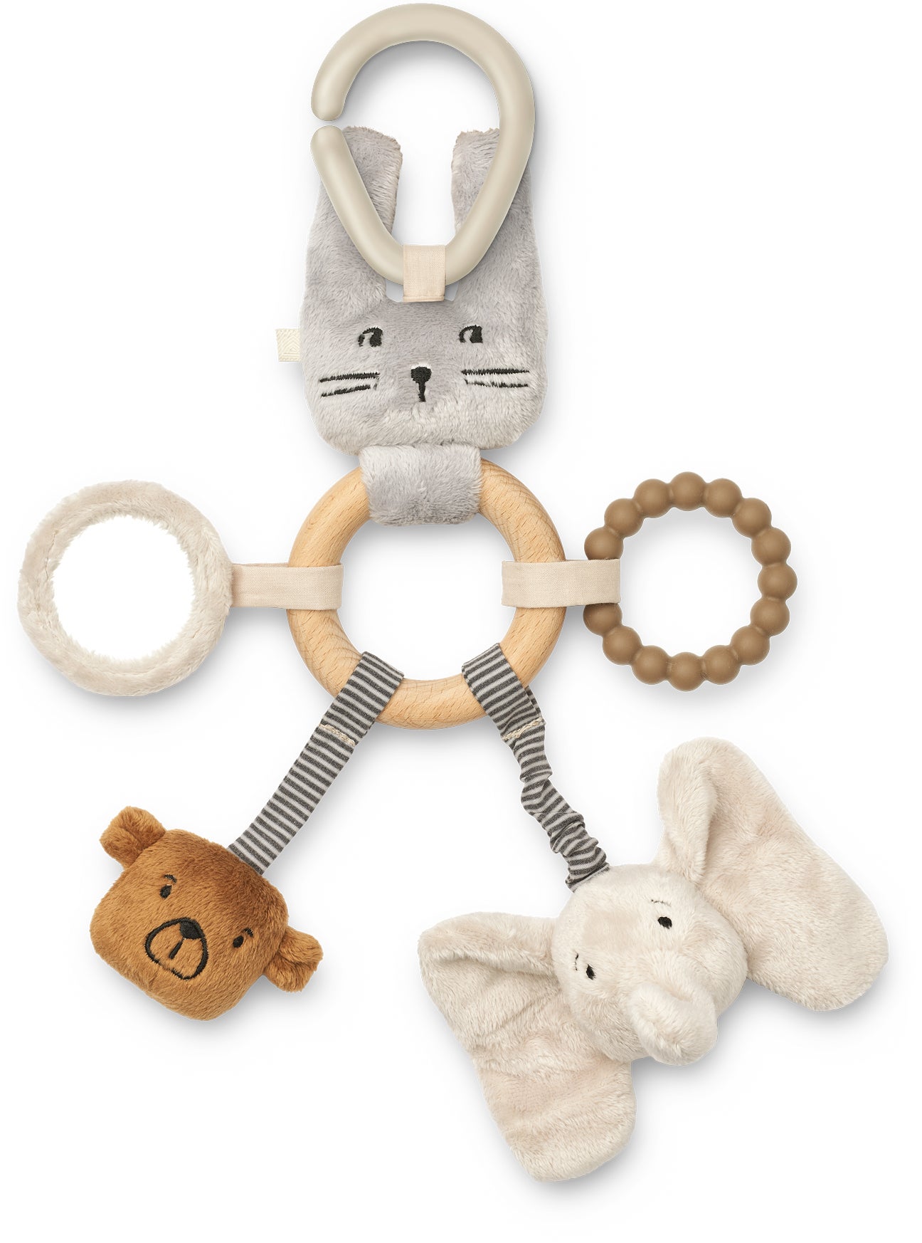Angie Classic aktivitetslegetųj fra LIEWOOD. - Forskellige teksturer. - Raslende og knitrende lyde. - Bidering. - Rangle. - Let for små hęnder at gribe om. - Sjove farver og et spejl til visuel stimulering. - Anbefalet alder: Fra 3 måneder.