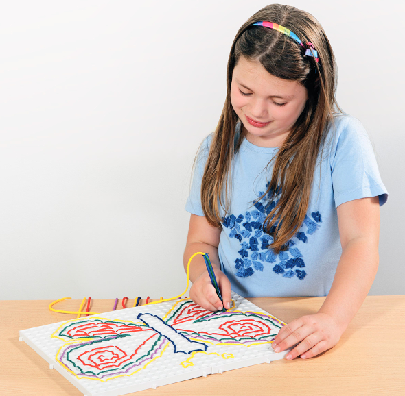 Meget smart udstyr til bųrn, der gerne vil lęre at sy. Eller bųrn, der tręnger til at få stimuleret koncentrationsevnen og finmotorikken på en lidt enderledes måde. Dit barn skubber pennen med tråd på ned i pladen, hvor tråden så sidder fast. Efterhånden dannes der mųnstre. Det fungerer, som når man syr på symaskine. Indhold: 4 sybrędder4 penne med tråd24 tråde med fine farver