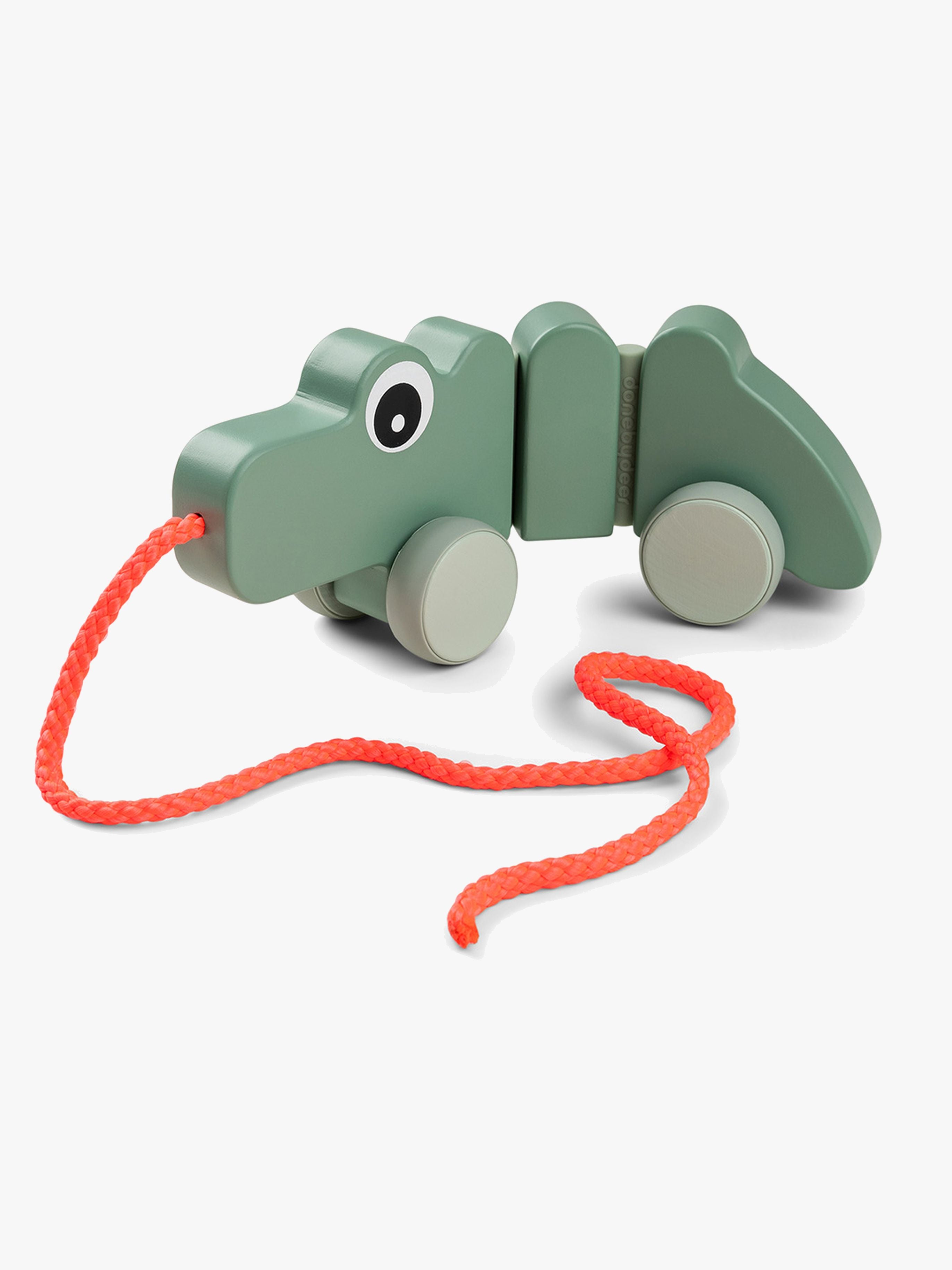 Med sit unikke design og bløde materiale er dette træklegetøj ideelt til børn, der er ved at lære at gå. Krokodillen kan let trækkes, hvilket motiverer barnet til at tage skridt og udforske omgivelserne. Den er lavet af bæredygtigt træ, hvilket sikrer holdbarhed og langvarig leg.