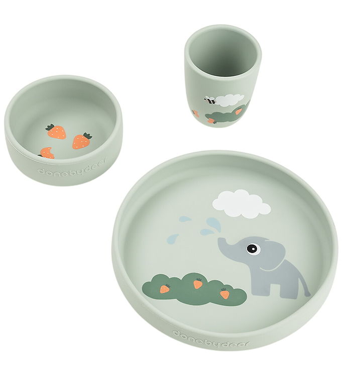 Done by Deer har skabt et spisesæt, der kombinerer funktionalitet og æstetik. Med sit søde Elphee-elefantdesign i en behagelig grøn farve, vil dette sæt med sikkerhed vække glæde hos dit barn.