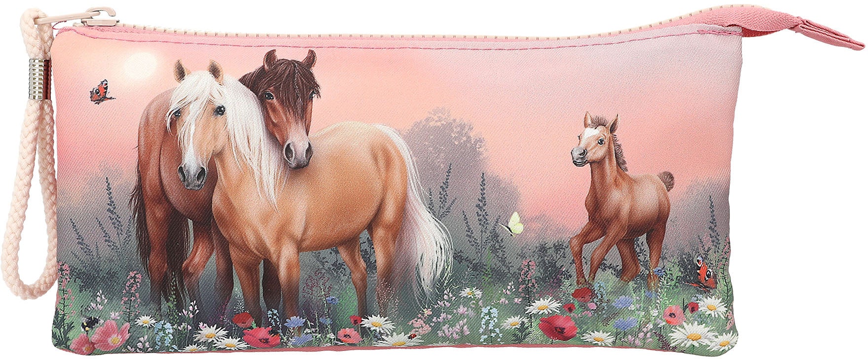 Fint penalhus fra Miss Melody med tre store rum. Perfekt til kreative aktiviteter. - Hestemotiver. - Tre rum med to lynlåse. - Kan også bruges som makeup-taske. - Anbefalet alder: Fra 6 år.