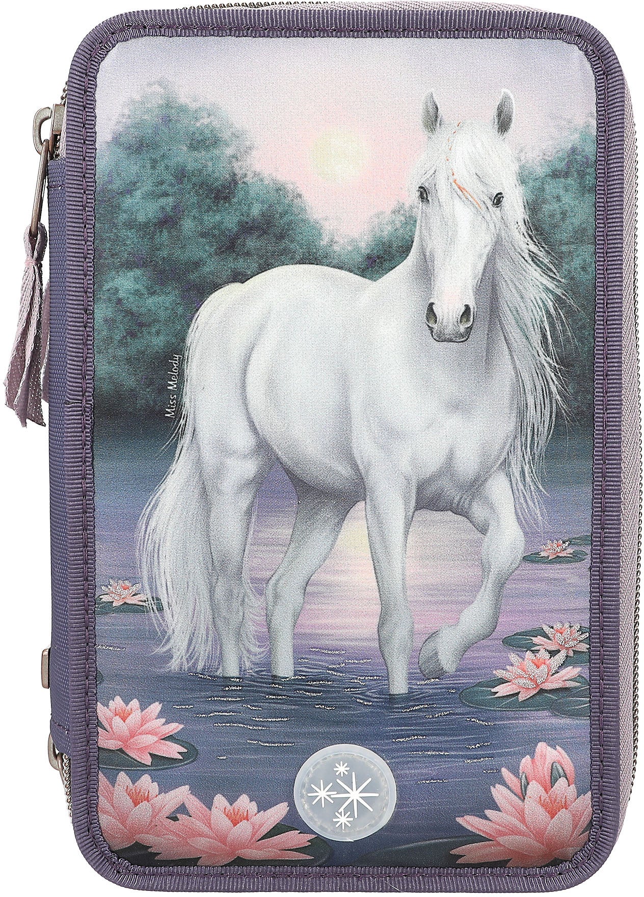 Fint tredelt penalhus fra Miss Melody med et komplet skrivesæt. Det har magiske lyseffekter foran. Perfekt til kreative aktiviteter. - Indeholder: 1 penalhus, 18 farveblyanter, 18 tusser, 2 blyanter, 1 saks, 1 limstift, 1 blyantspidser, 1 lineal, 1 viskelæder. - Lyseffekter. - Tre rum. - Anbefalet alder: Fra 6 år.
