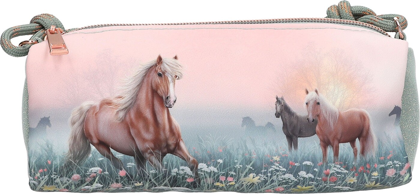 Giv dit barn et stilfuldt og funktionelt penalhus med Miss Melody - Romantic Fields. Dette penalhus er ikke kun praktisk, men også en smuk tilføjelse til enhver skoleudstyr. Med sit unikke design, der prydes af elegante heste, vil det uden tvivl fange opmærksomheden hos både børn og voksne.