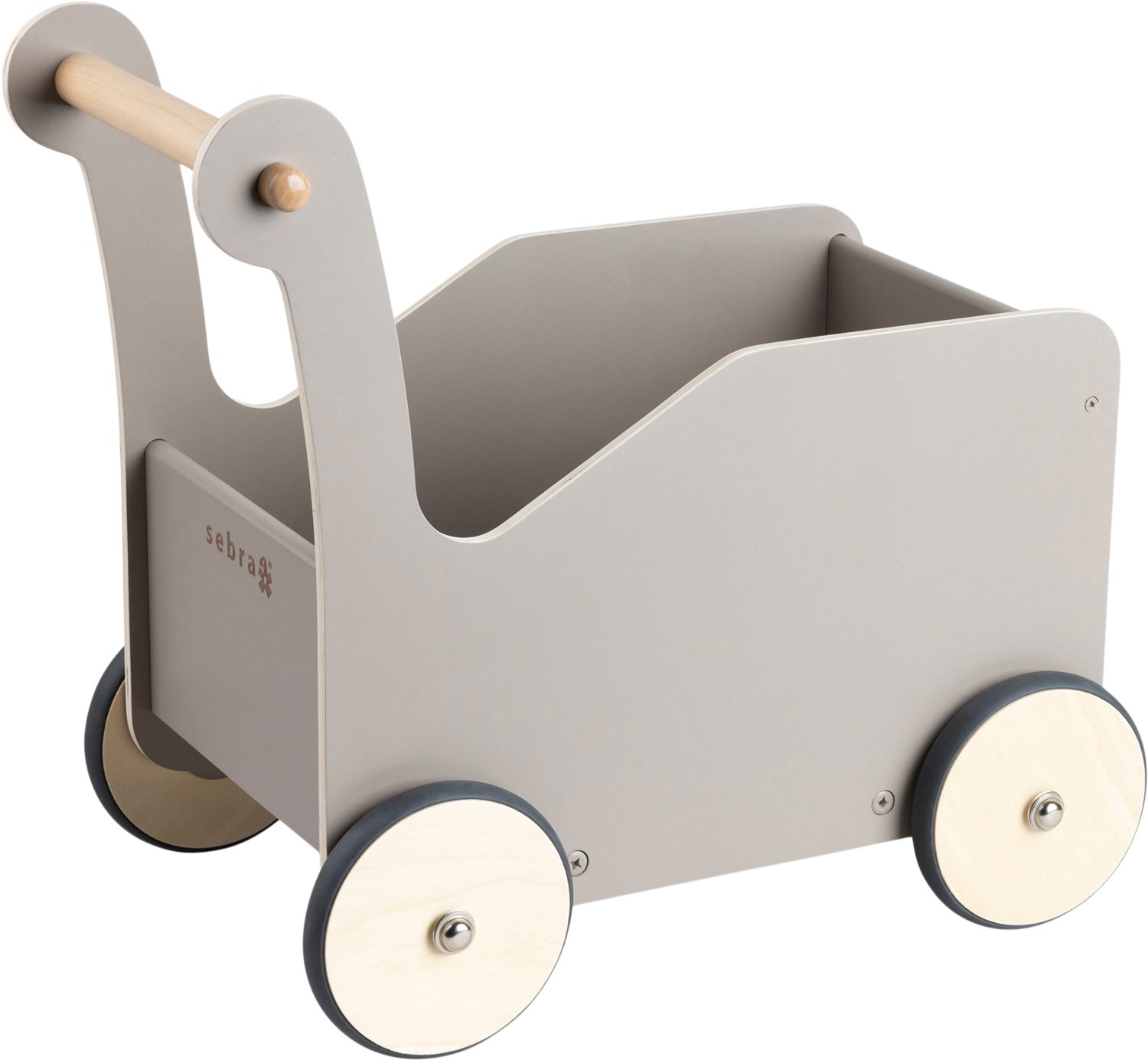 Sebra gå-vognen indbyder til en gåtur tværs over stuegulvet og er en god støtte til de første små skridt. Gåvognen er udstyret med gummihjul, der gør, at den kører let og støjsvagt hen over gulvene. De to fronthjul fungerer som støddæmpere, hvis den lille