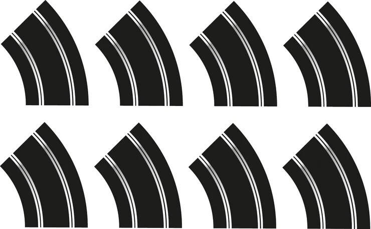 Med otte R2 sving giver denne pakke mulighed for at skabe komplekse og interessante banedesigns. De glatte kurver sikrer, at dine biler kan navigere hurtigt og effektivt, hvilket giver en mere dynamisk racingoplevelse. Uanset om du er en nybegynder eller en erfaren rytter, vil disse sving forbedre din bane betydeligt.