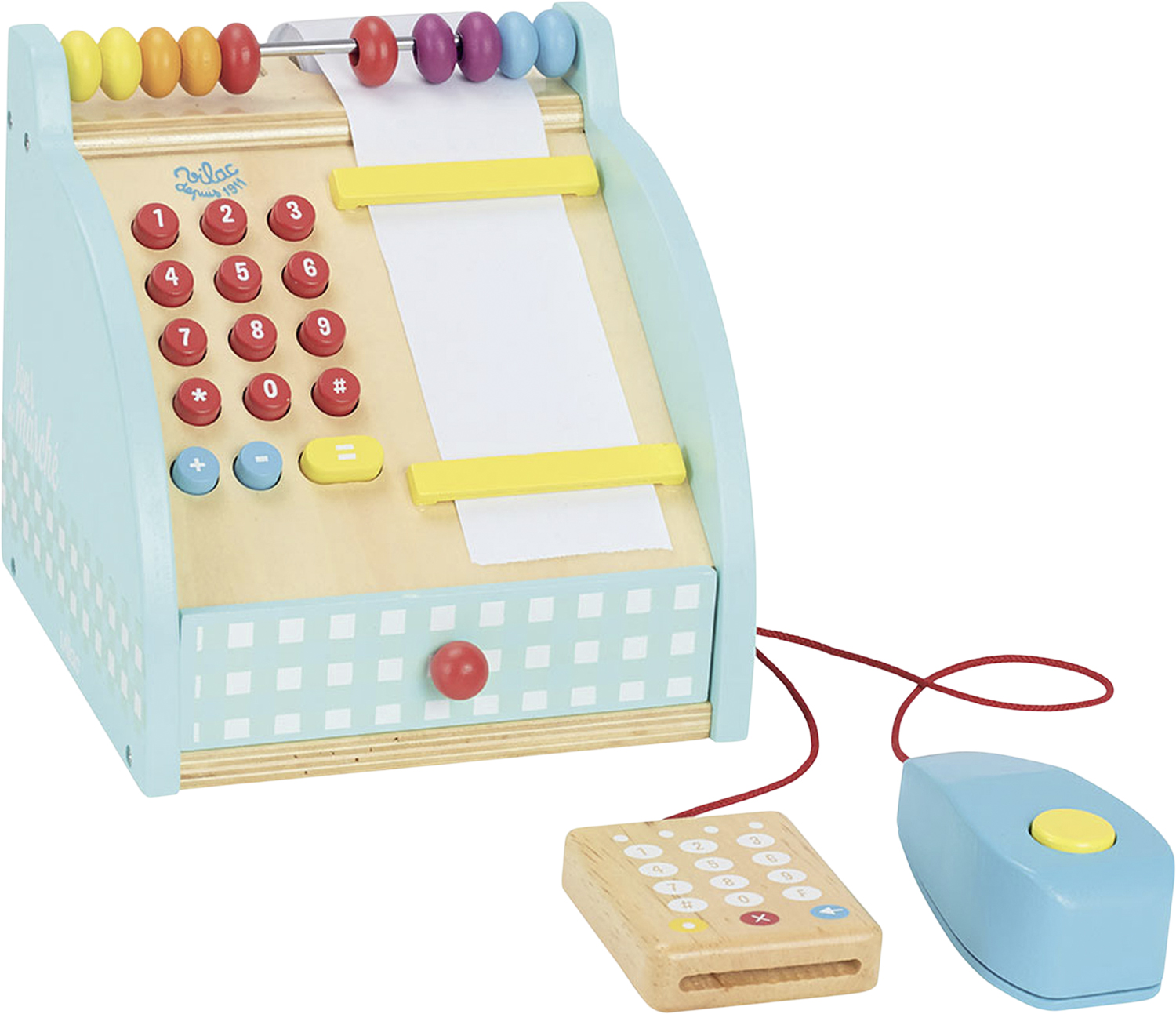 Kasseapparatet har mange funktioner, som gør det endnu sjovere at lege.Super at have i sin restaurant eller købmandsbutik.Skanneren kan bippe og der medfølger legepenge samt muligheden for at give kunderne en bon.Passer til regneruller maks. 57 mm. bred.M