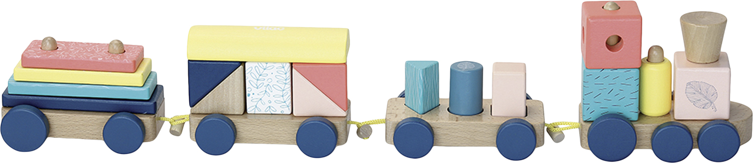 Togsæt med 4 togvogne, hvorpå man kan stable klodser og bygge bygninger. Alt i naturlige douce farver.Produkt: 56 x 11 x 7 cm.Emballage: 44 x 12 x 8 cm.Alder: 18mdr+