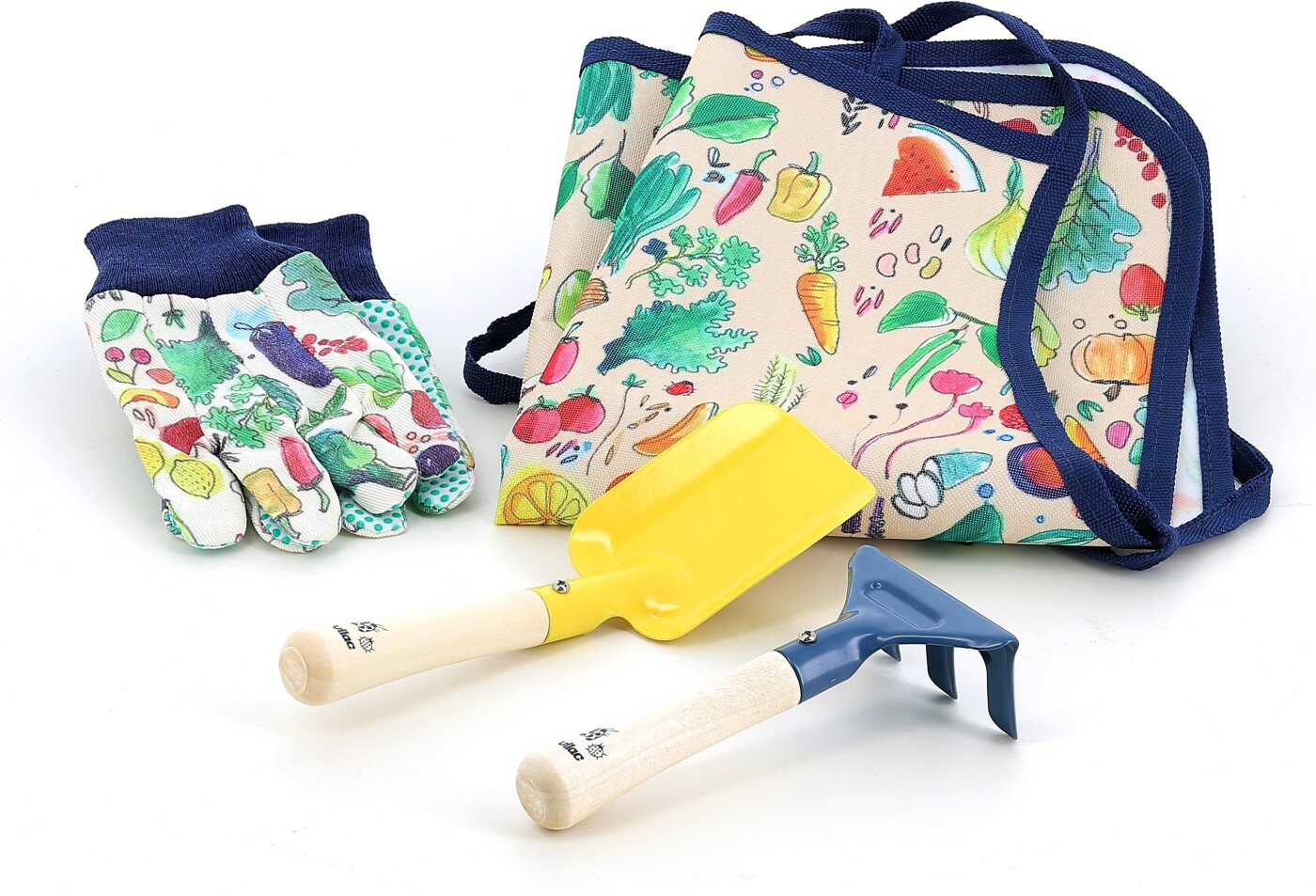 Dette havesæt med en rive, et par handsker og et fint forklæde er ideelt til at introducere din lille til glæden ved havearbejde fra en meget ung alder. Med kvalitetsværktøj tilpasset de smås...