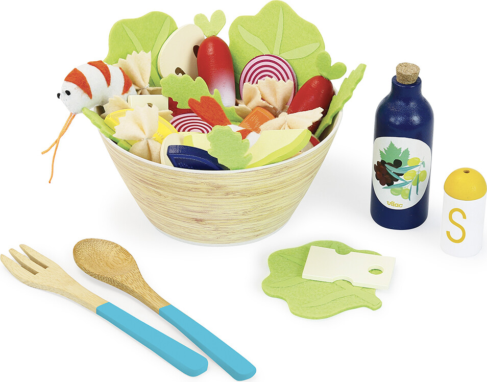 Salatskål med alle ingredienser til en lækker salat. 40 stykker tilbehør: 1 stor bambusskål,...