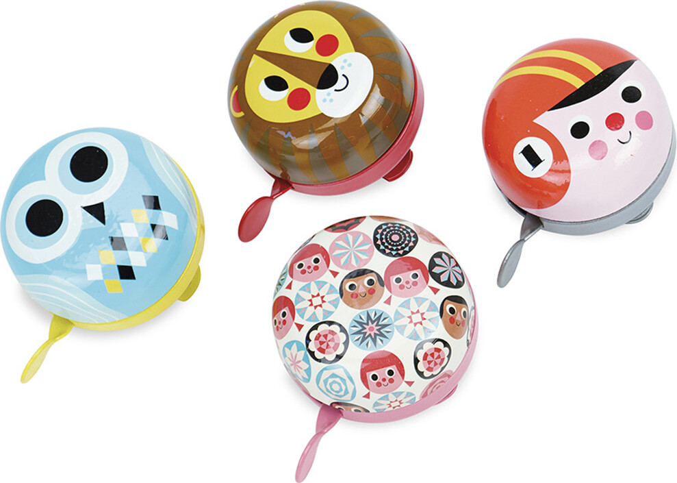 Cykelklokke med forskellige glade designs. Designet af den svenske kunstner Ingela P Arrhenius....