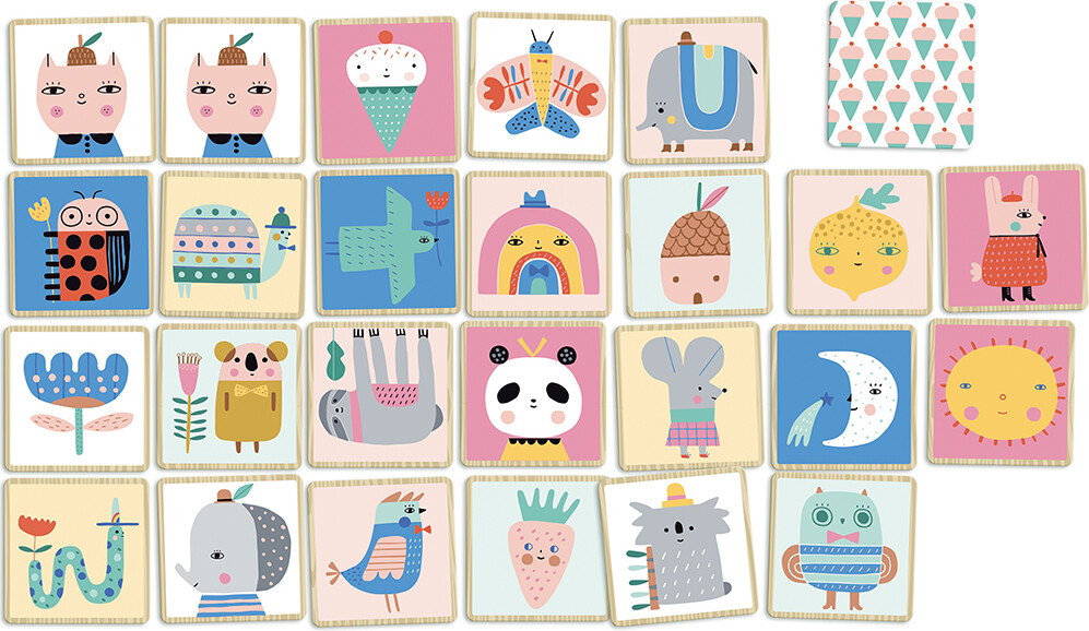 Flot illustreret huskespil med søde motiver og 48 brikker af træ. Leveres i en dekoreret...