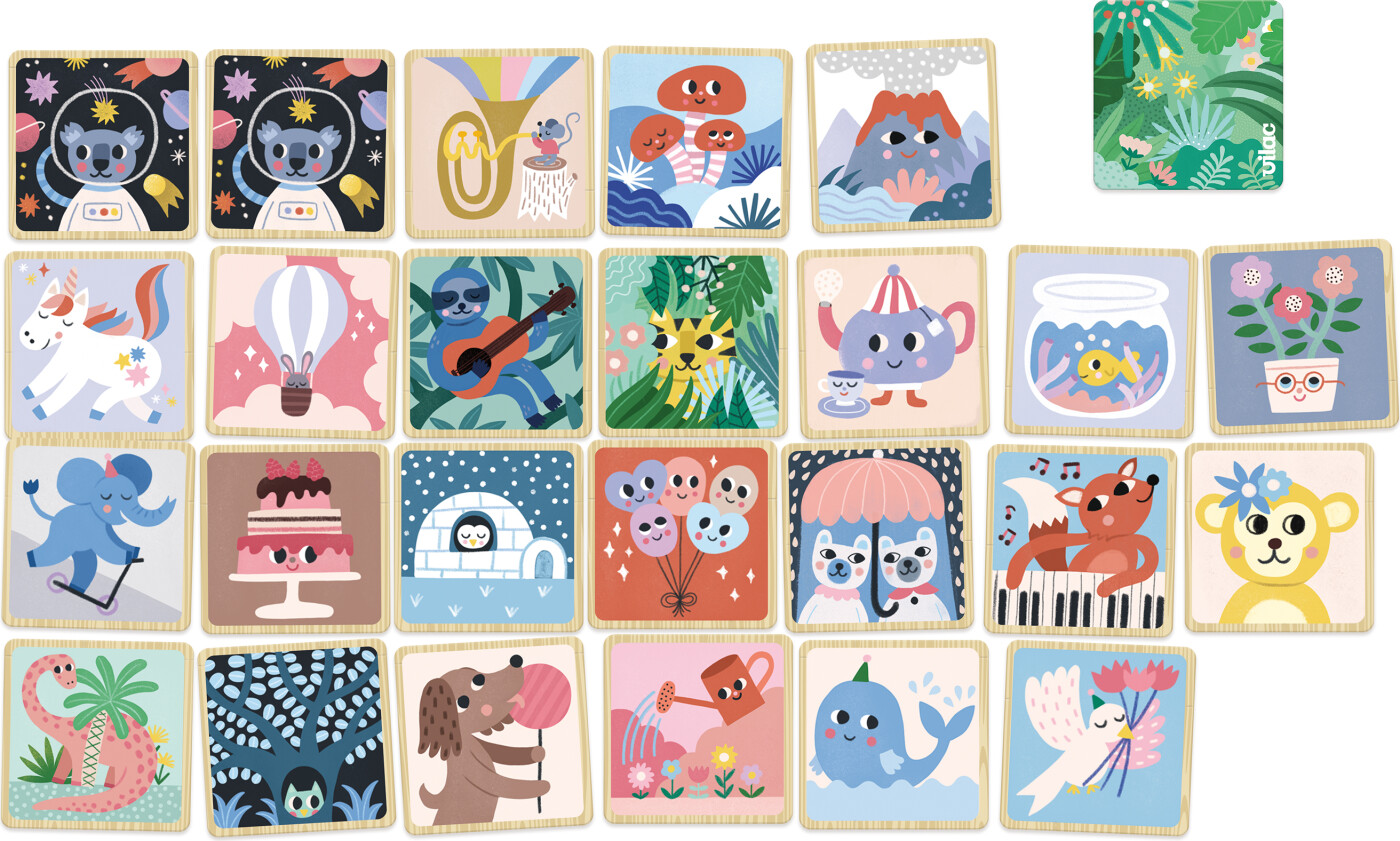 Et originalt huskespil af træ, der giver børn mulighed for at berige deres ordforråd og...