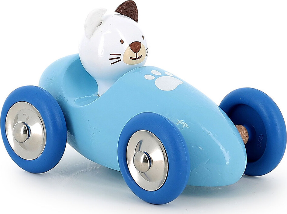 Denne træbil har en sjov figur som chauffør og den er fremstillet med en eksklusiv lakeret finish...