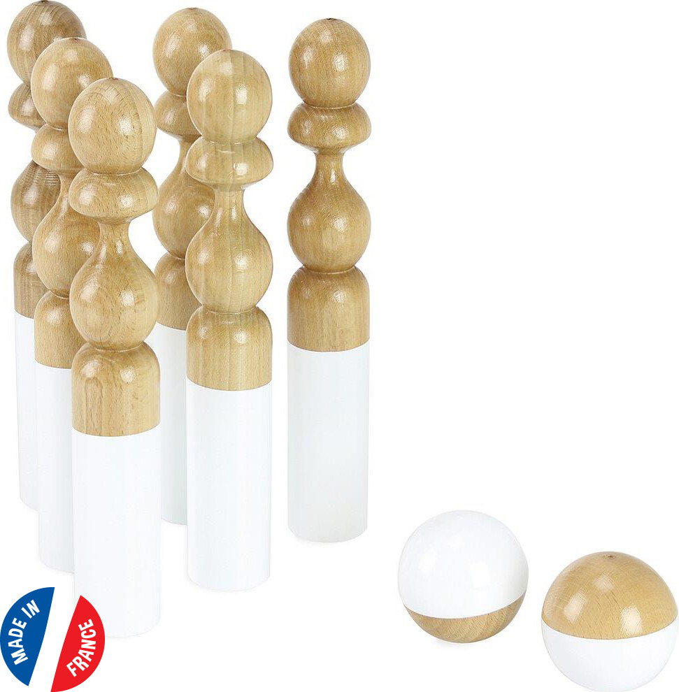 Familiespil med 6 kegler og 2 kugler i trę. Produkt: 24 x 20 x 5,2 cm Emballage: 25 x 22,5 x 8 cm....