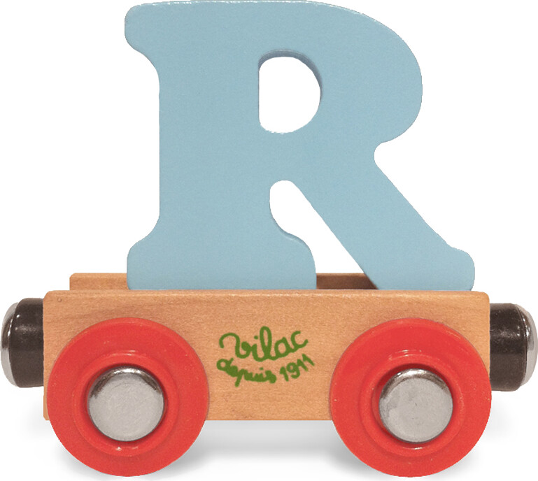 Togvogn med bogstavet R og magnetkobling i begge ender, så den kan trækkes af Vilacs lokomotiv og...