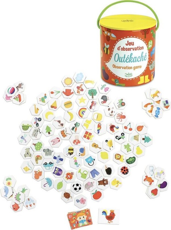 Outékaché er et raffineret observationsspil i træ der kombinerer fransk designtradition med pædagogisk værdi. Dette hurtige og engagerende spil udfordrer børn fra 4 år og opefter til at være først med at finde det rigtige motiv blandt en samling af farverige træbrikker. Den enkle spillemekanik skjuler en sofistikeret træning af visuelle færdigheder der er fundamentale for senere læseindlæring og koncentrationsevne.