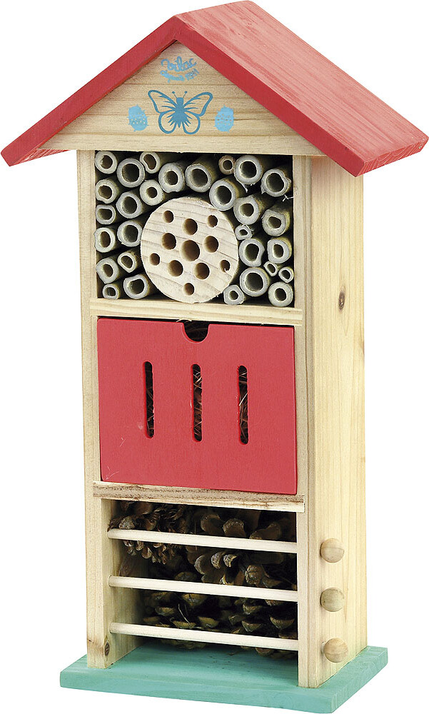 Et fint insekthus i behandlet træ til havens insekter. En fin sommerfornøjelse. Huset er i lyse...