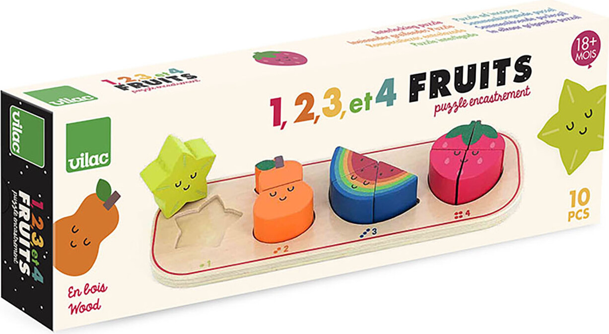 Vilac - Puslespil 10 Brikker - Fire Frugter