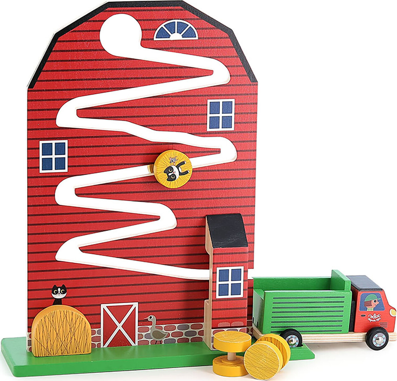 Sjovt aktivitetslegetøj med rullende halmballer, en sød kat og en lastbil med hjul. Hjælp...