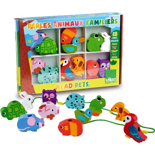 Vilac - Babyperler i trę. Er velegnet til Finmotorik,Hånd-ųje-koordination,Koncentration og passer til aldersgrupperne: 18 mdr.,2 år