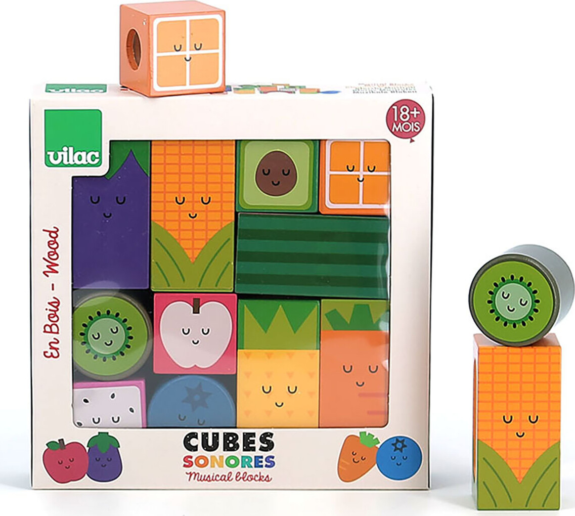 Vilac - Klodser Med Lyd - Frugter Og Grøntsager - Træ - 11 Dele