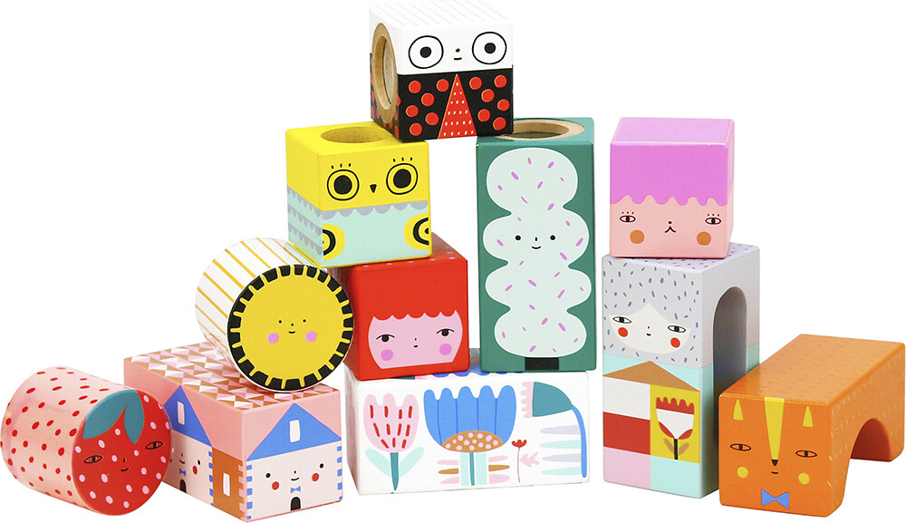 Med i alt 11 klodser prydet med farverige og unikke designs fra den anerkendte illustrator Suzy Ultman, er hver klods en lille kunstnerisk perle. Klodserne er lavet af høj kvalitet træ, hvilket sikrer holdbarhed og sikkerhed under leg. De er lette for små hænder at gribe fat i, hvilket gør dem perfekte til både tumlinger og lidt ældre børn.