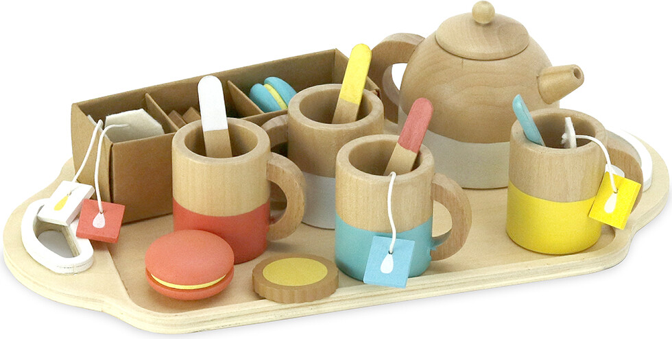 Introducer dine børn til en verden af kreativ leg med dette tesæt i træ fra Vilac. Sættet indeholder 21 dele, hvilket gør det ideelt til te-selskaber og stimulerende rollelege. Hver del er designet med fokus på kvalitet og sikkerhed, så børnene kan lege trygt.