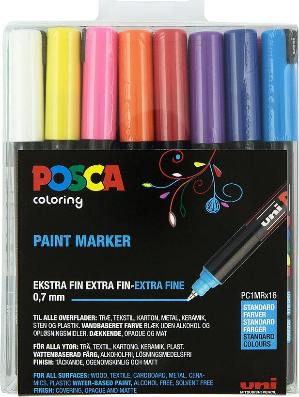 Slip kreativiteten løs med det fantastiske POSCA tuschsæt i basisfarver! Sættet indeholder 16 POSCA PC-1MR tuscher med en ultrafin 0,7 mm spids, der er perfekt til både at skrive, tegne og...
