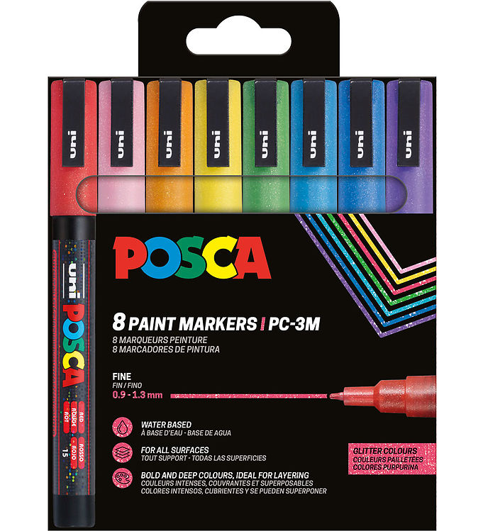 Posca Tuscher - PC-3M - 8 stk. - Multifarvet m. Glimmer