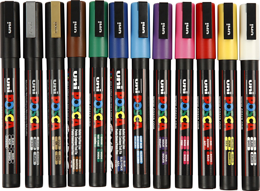 Posca Tusch - Nr. Pc-3m - Tykkelse 0,9-1,3 Mm - 12 Farver
