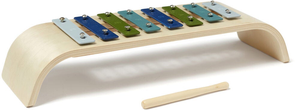 En sjov xylofon fra Kids Concept i naturfarvet, bøjet træ med blå plader, som dit barn kan spille på. Dette skønne legetøjsinstrument passer perfekt til kreative og musikinteresserede børn. Et sjovt indslag til børneværelset. Komplimentér gerne med andre instrumenter fra Kids Concept. Anbefalet alder: Fra 18 måneder.
