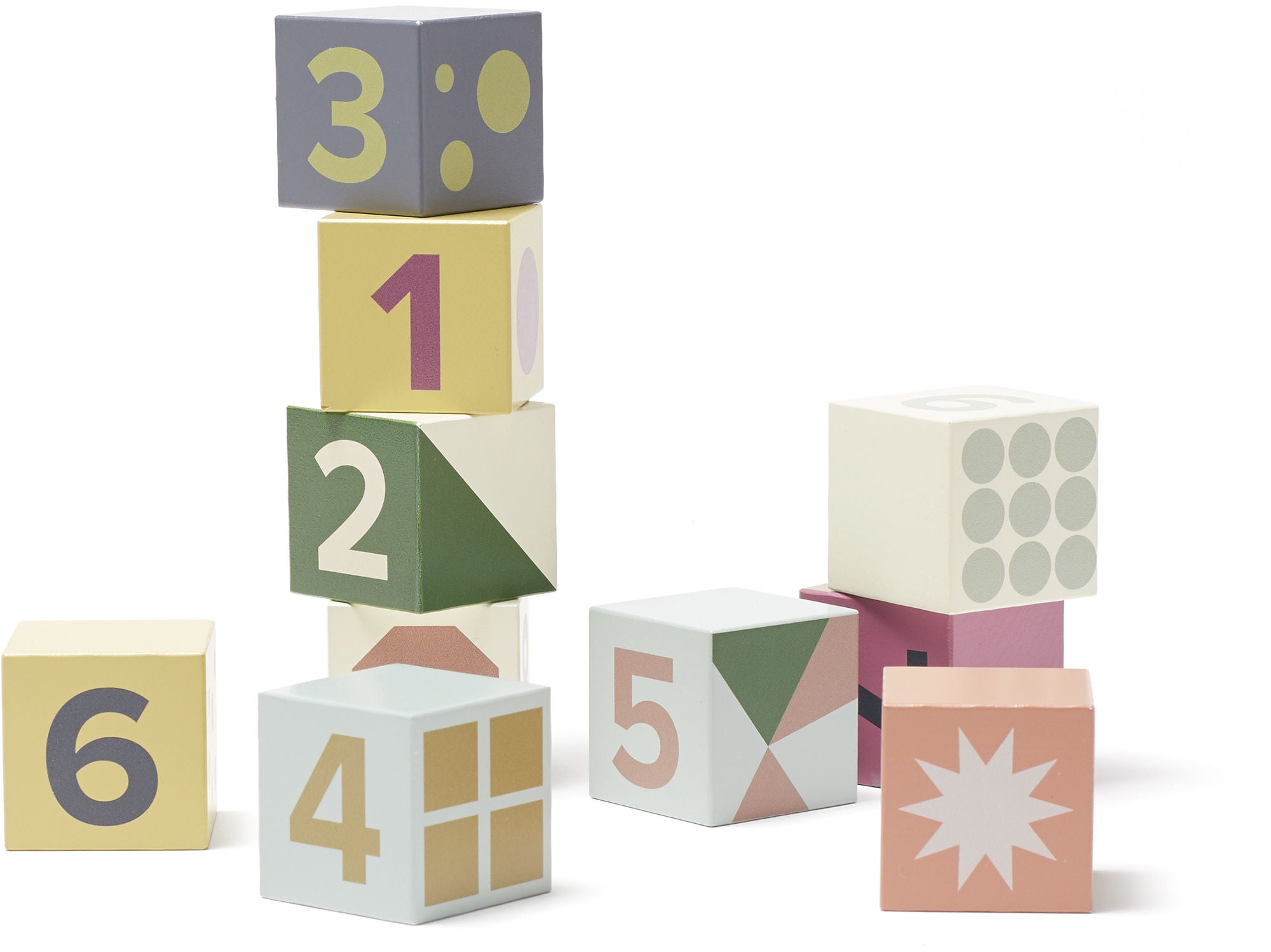 Ti fine træklodser fra Kids Concept. Klodserne har forskellige mønstre og figurer på siderne, der passer til tallene på klodserne. En sjov måde at lære tal og at tælle til ti. Klodserne opbevares i en fin, medfølgende bomuldspose. Anbefalet alder: Fra 12 måneder.