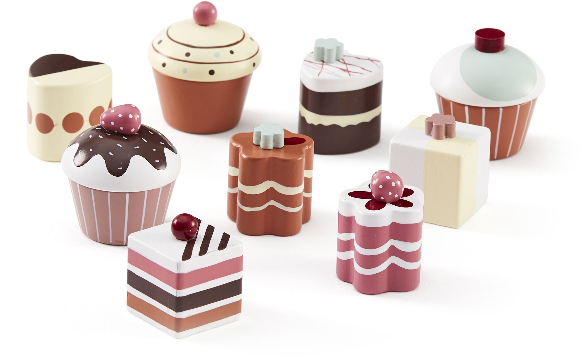 Her får du ni lækre kager i træ fra Kids Concept. Kagerne er malet i fine farver og flotte detaljer, så du kan byde dine venner og familie til et rigtig lækkert kagemor! Anbefalet alder: Fra 3 år.