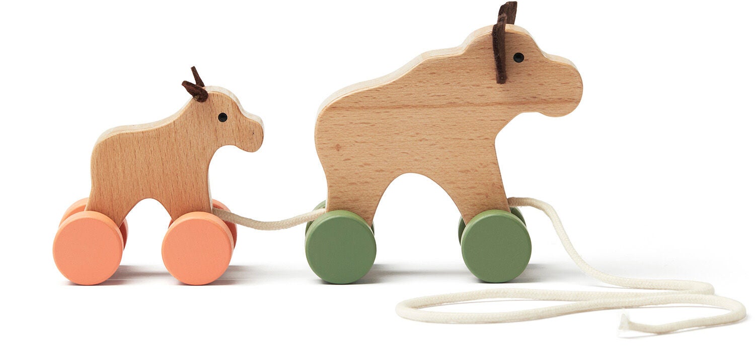 EDVIN trękdyr fra Kids Concept med et tidlųst design. Det har to elge med blųde horn i filt og en krop i FSC-certificeret trę og et praktisk bånd. Perfekt til mange timers sjov. CE-męrket. Anbefalet alder: Fra 12 måneder. Bųgetrę, bomuld, rustfrit stål.