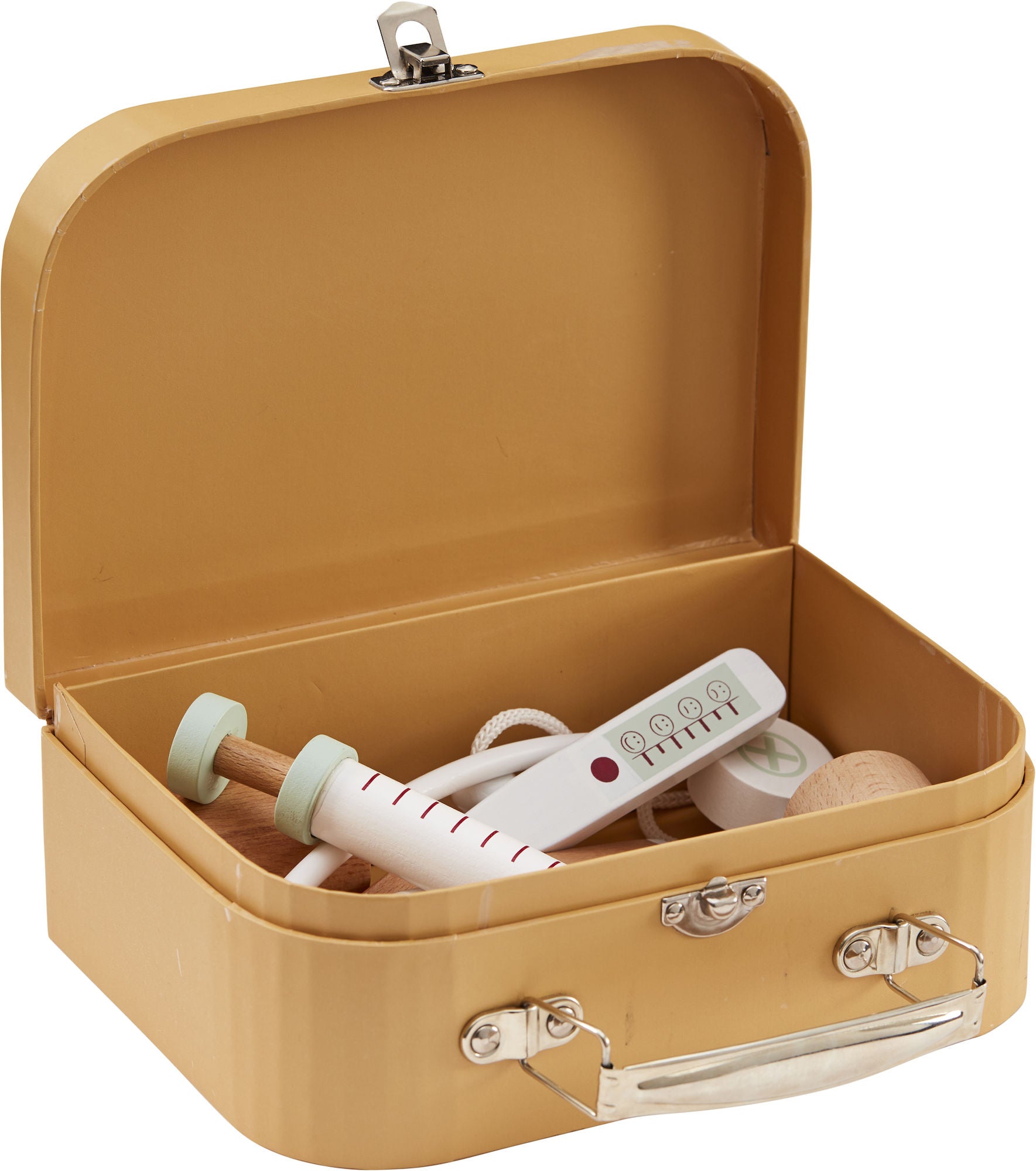 Denne sjove lęgetaske fra Kids Concept indeholder et stetoskop, et termometer, pilleglas, salve, sprųjte, reflekshammer og en trępind. Med dette sęt kan du lege lęge og sikre at dine bamser har det godt. Anbefalet alder: Fra 3 år.