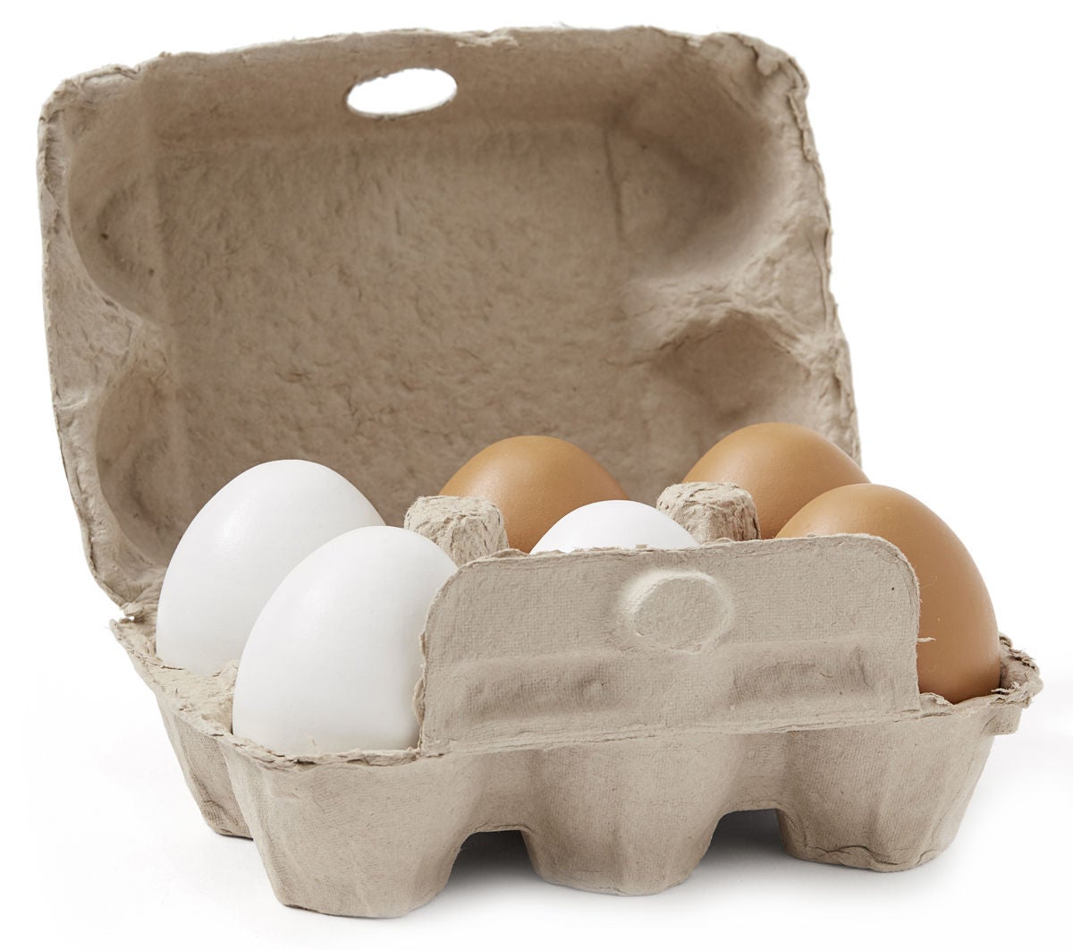 Et sęt med en ęggebakke og seks ęg af trę fra Kids Concept. Perfekt nåt du leger butik! Anbefalet alder: Fra 3 år.