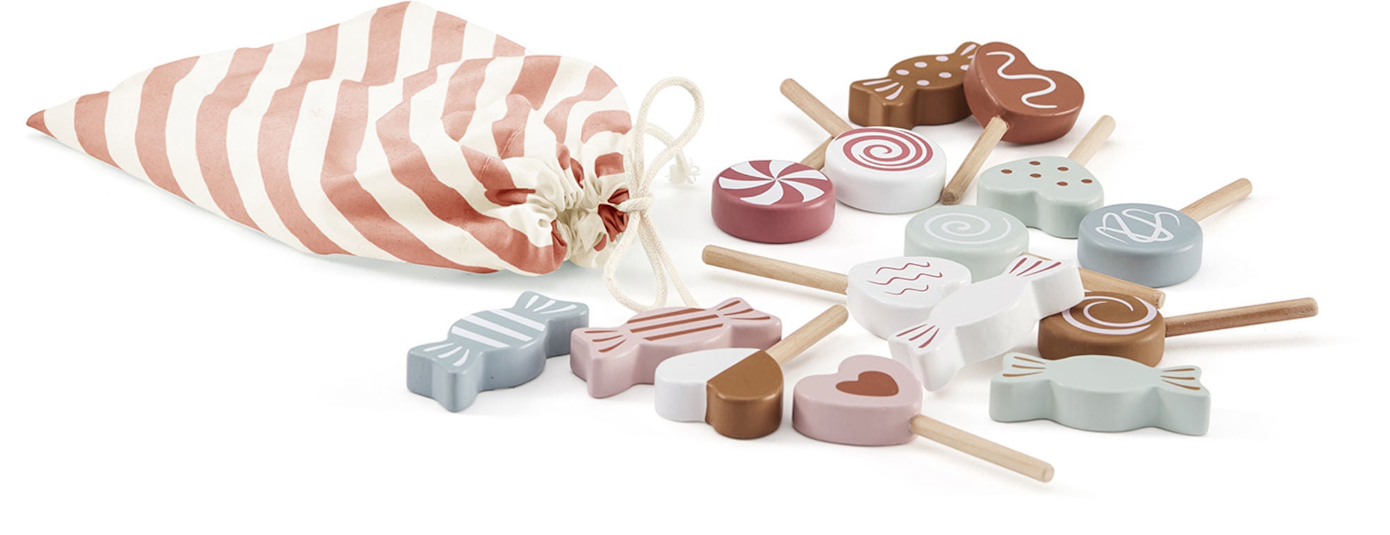 Dette er et sæt fyldt med en masse lækkert legetøjs slik fra Kids Concept. Du kan nu holde filmaften med dine bamser og give dine bamser det gode slik. Legetøjsslikket er fremstillet i fine farver og kan opbevares i den medfølgende pose. Anbefalet alder: Fra 3 år.