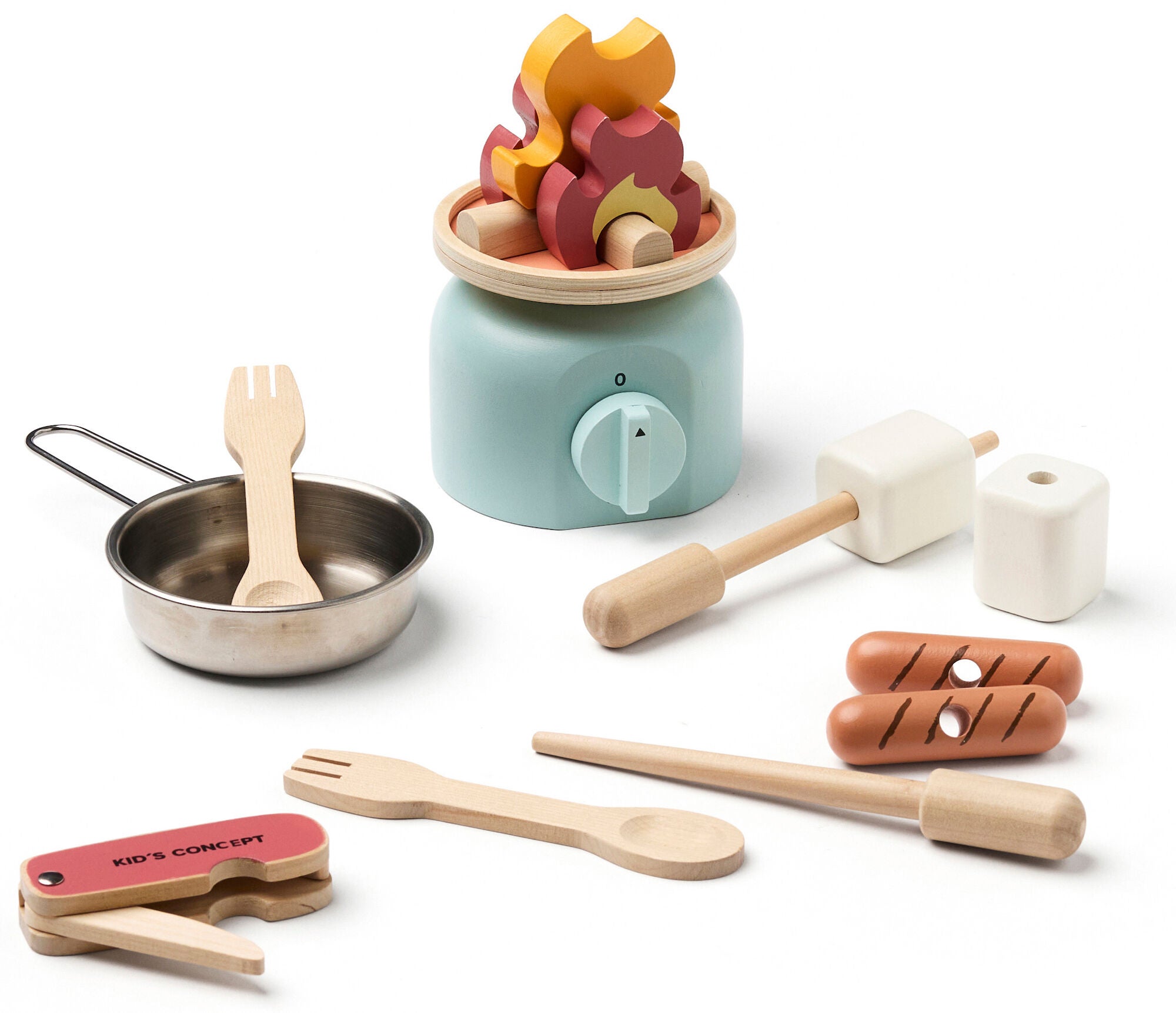 Campingkøkken fra Kids Concept med legemad og andet tilbehør. Perfekt til timevis af fantasifuld leg. - Indeholder: 1 gaskomfur, 1 stegepande, 1 ildsted, 2 grillpinde, 2 skumfiduser, 2 hotdogs, 2 skegafler, 1 trækniv. - Detaljeret design. - Perfekt til kreativ og fantasifuld rolleleg. - CE-mærket. - Anbefalet alder: Fra 2 år. - FSC-certifieret MDF, FSC-certificeret krydsfiner, jern.