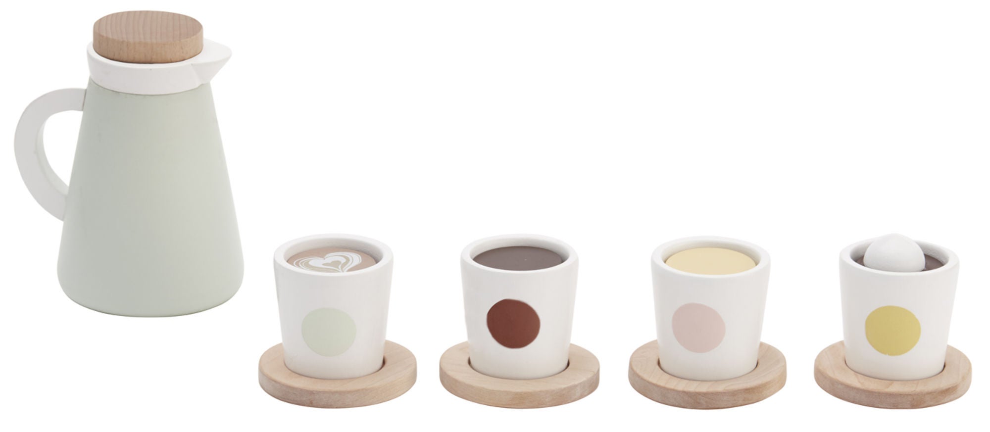Med dette sæt fra Kids Concept har du alt, du behøver for at kunne byde dine venner og bamser på en te. Sættet indeholder en termokande, fire forskellige kopper med underkop, som alt sammen er i træ. Perfekt til at servere eftermiddagskaffen med.