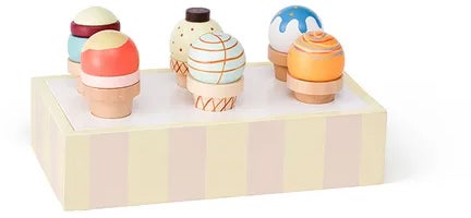 Is fra Kid's Concept med et tilhørende stativ. Perfekte til timevis af fantasifuld leg. - Indeholder: 6 isvafler, 1 stativ. - Til sjov og fantasifuld rolleleg. - Anbefalet alder: Fra 2 år. - Træ.