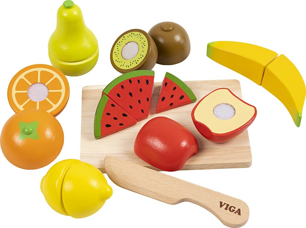 Nu kan du lave din egen lækre frugtsalat med ingredienser fra VIGA's frugtsæt! Sættet består af en række flotte frugter lavet i træ og sammensat med velcro, så det kan skæres over med den...