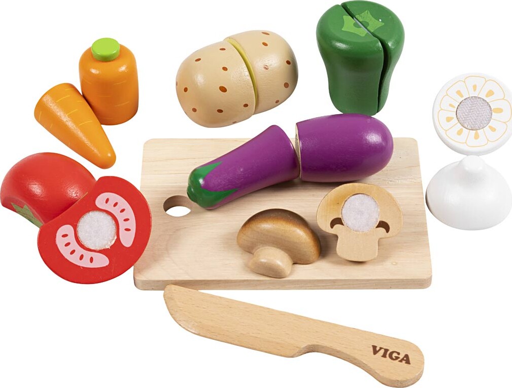 Viga - Legemad I Træ Med Velcro - Grøntsager - 20 Stk