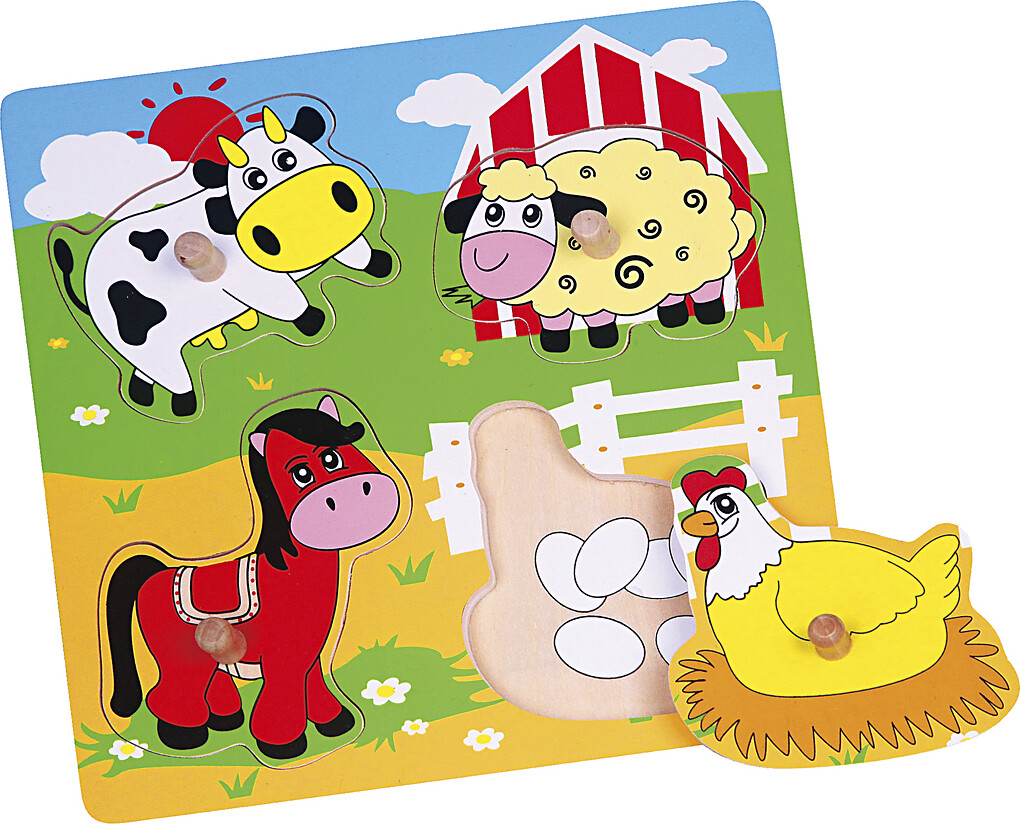 Viga Puslespil I Træ - Bondegårdsdyr - Knoppuslespil - 4 Brikker