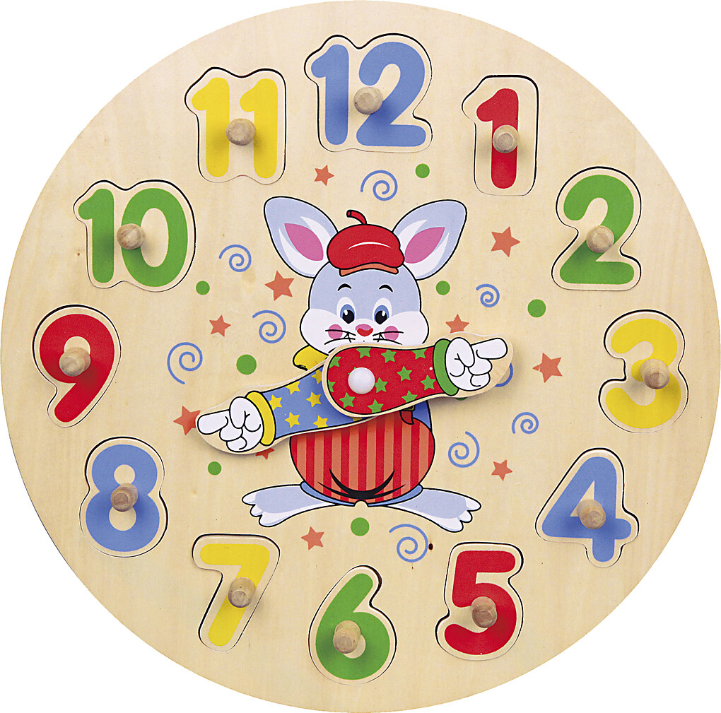 Sjovt puslespil formet som et ur med både brikker og bevægelige visere, så børnene kan lægge puslespil og lære klokken. Brikkerne har træknopper, så små fingre kan gribe om dem. Styrker...
