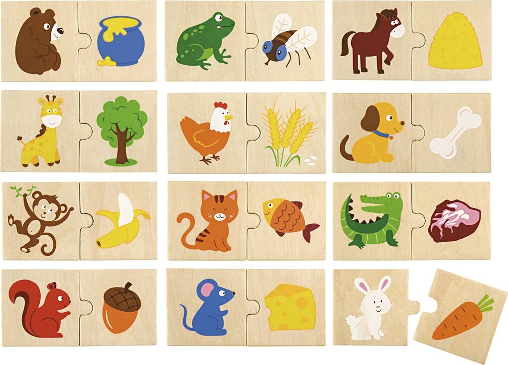 Viga Puslespil I Trę - Dyr Og Mad - 12 Mini Puslespil
